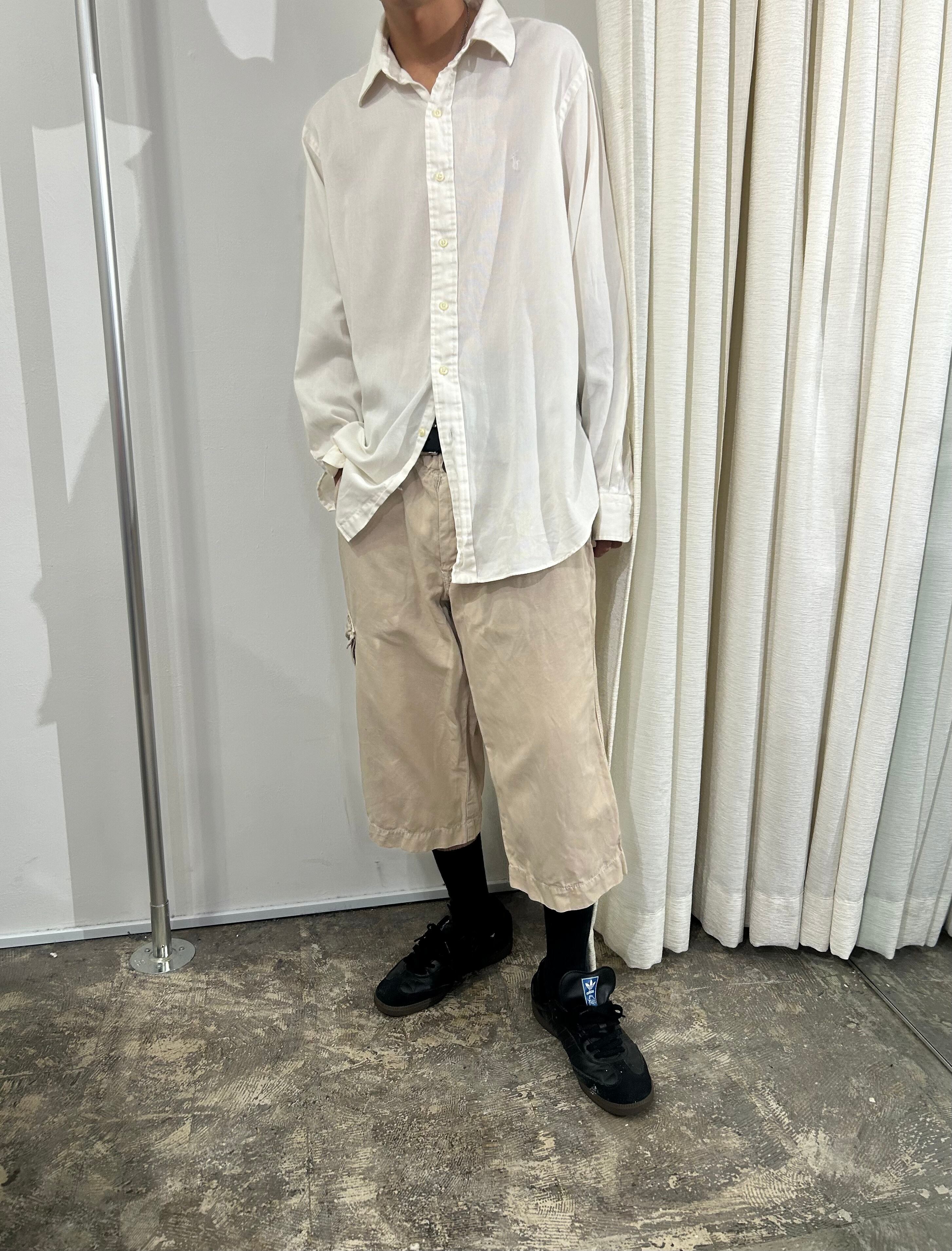片側のみ配置されたカーゴポケットが程よいアクセントとなり、ミニマルなデザインに遊び心をプラスしています。カジュアルにも、シャツやジャケットと合わせたスマートな着こなしにもおすすめの一本です。
