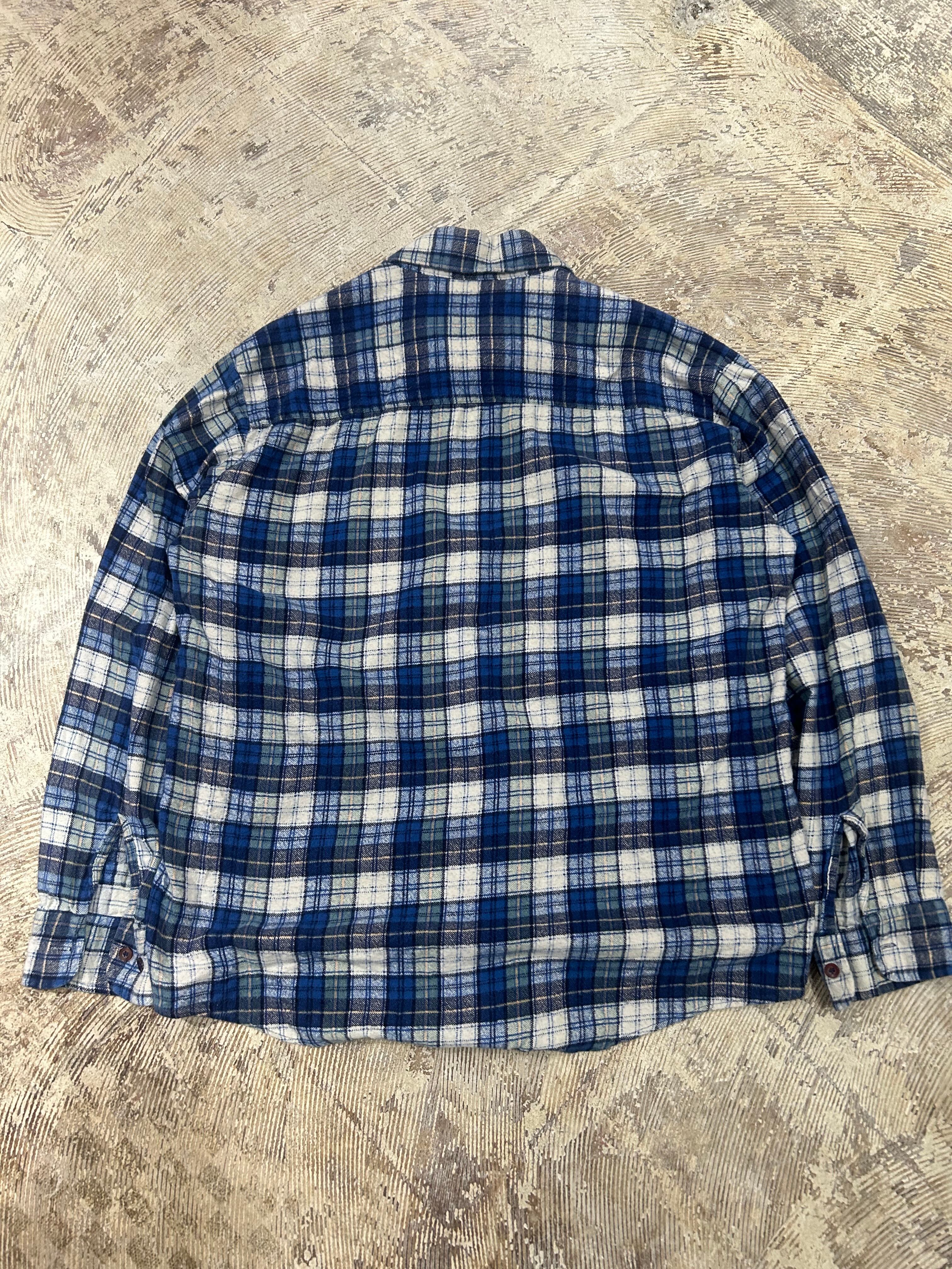 配色はブルーとホワイトのチェックにうっすらオレンジライン。ダサくていい...