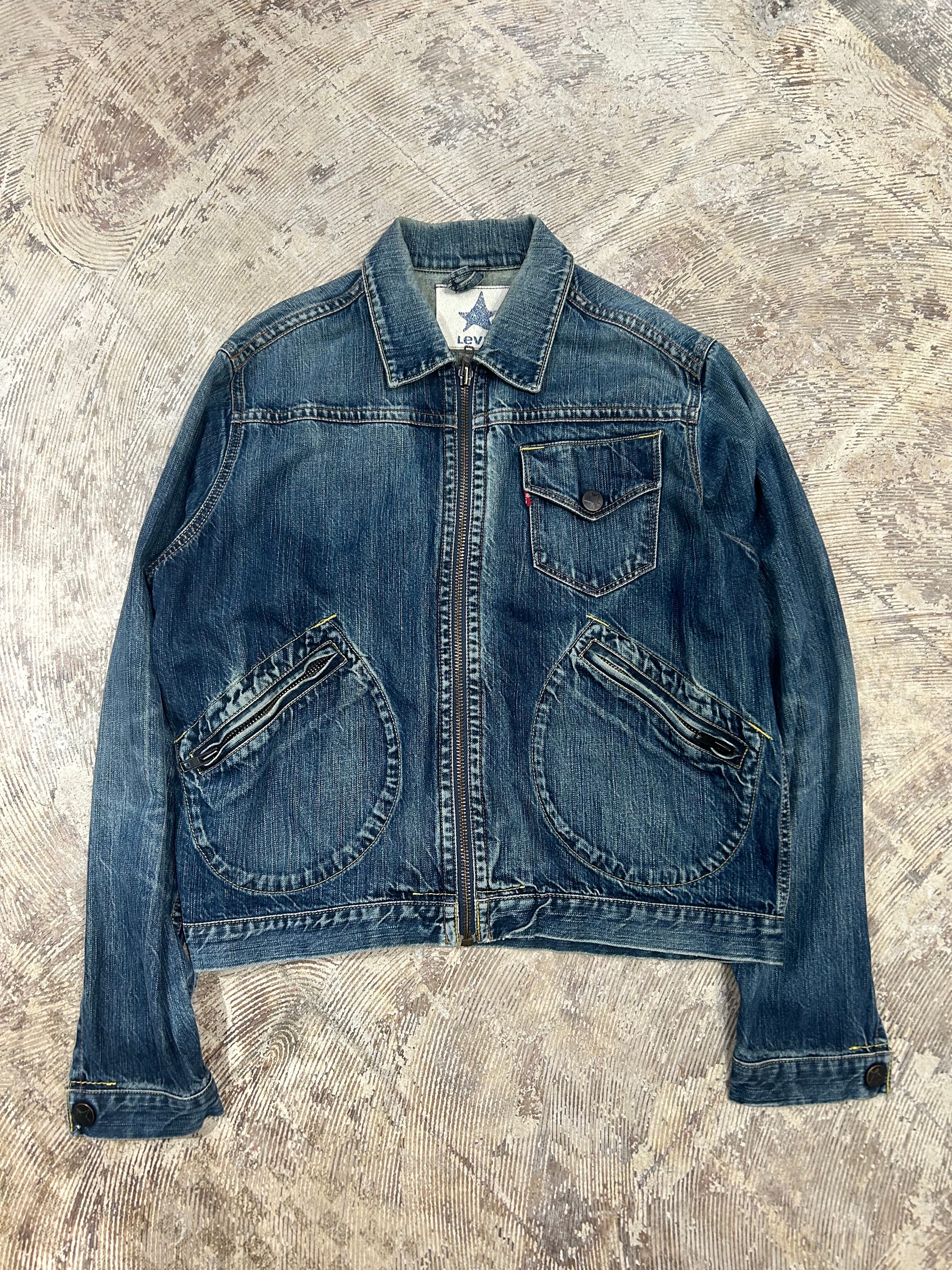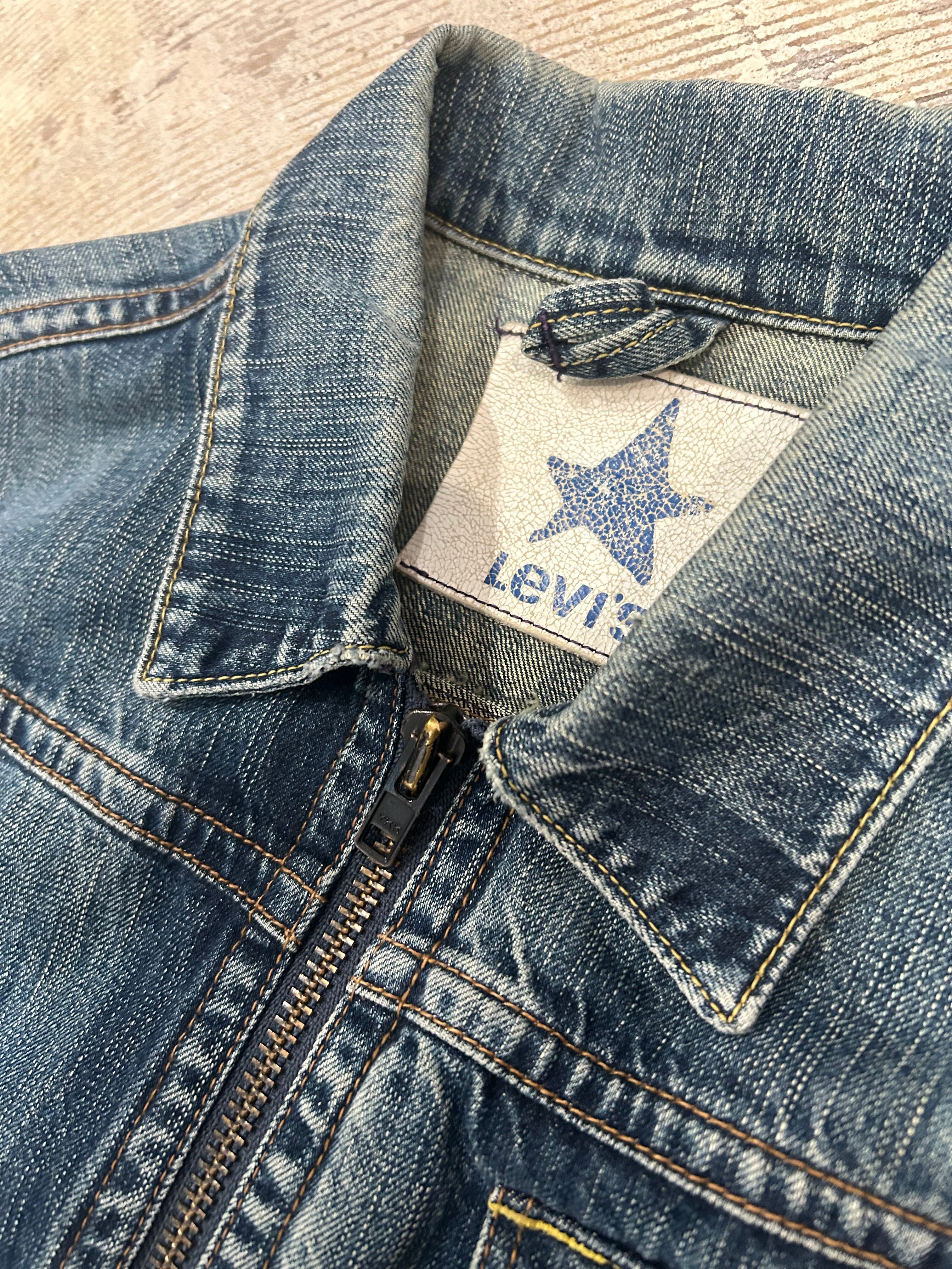 色落ちがヨーロッパらしい緑味強めのデニム生地で、シルエットは身幅が広く短丈で着やすい形です!