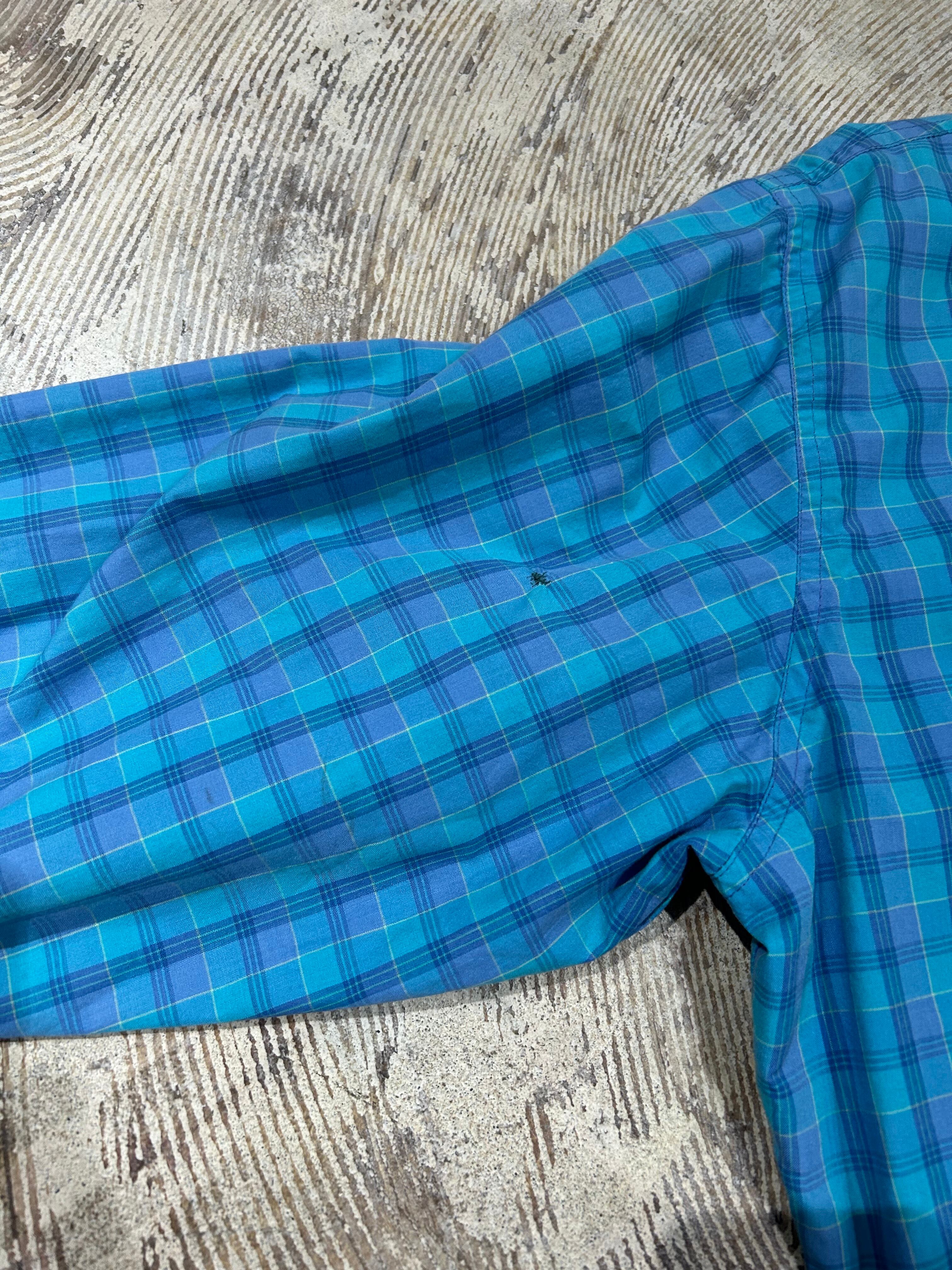 目を引く水色のチェックがポイント!裏面はグレーに近いブルーで単色。