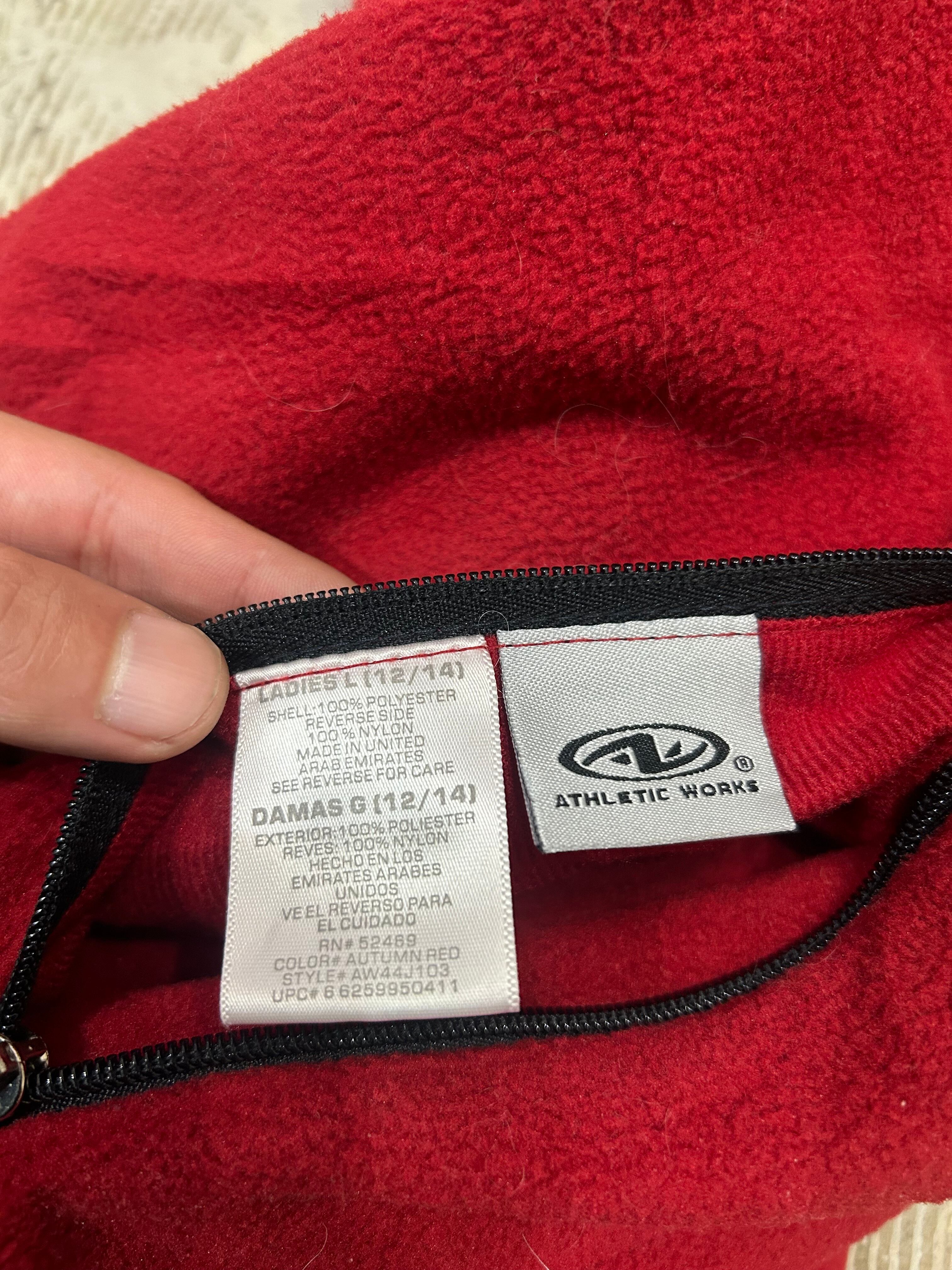 ブラックの面がナイロン、レッドの面がフリース素材のベストです。
