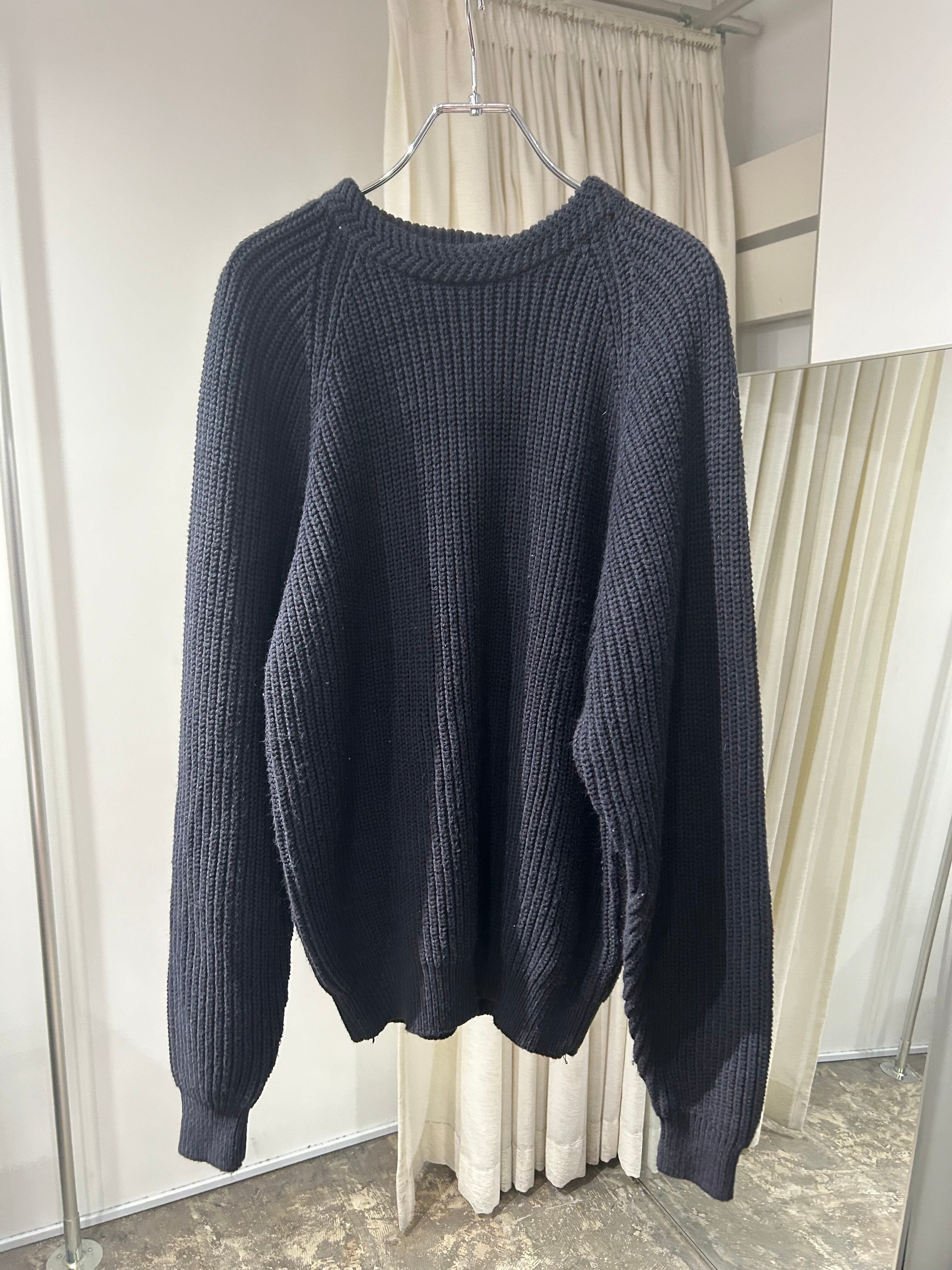 ざっくりと編まれたベーシックなクルーネックニットは使いやすさも抜群です。