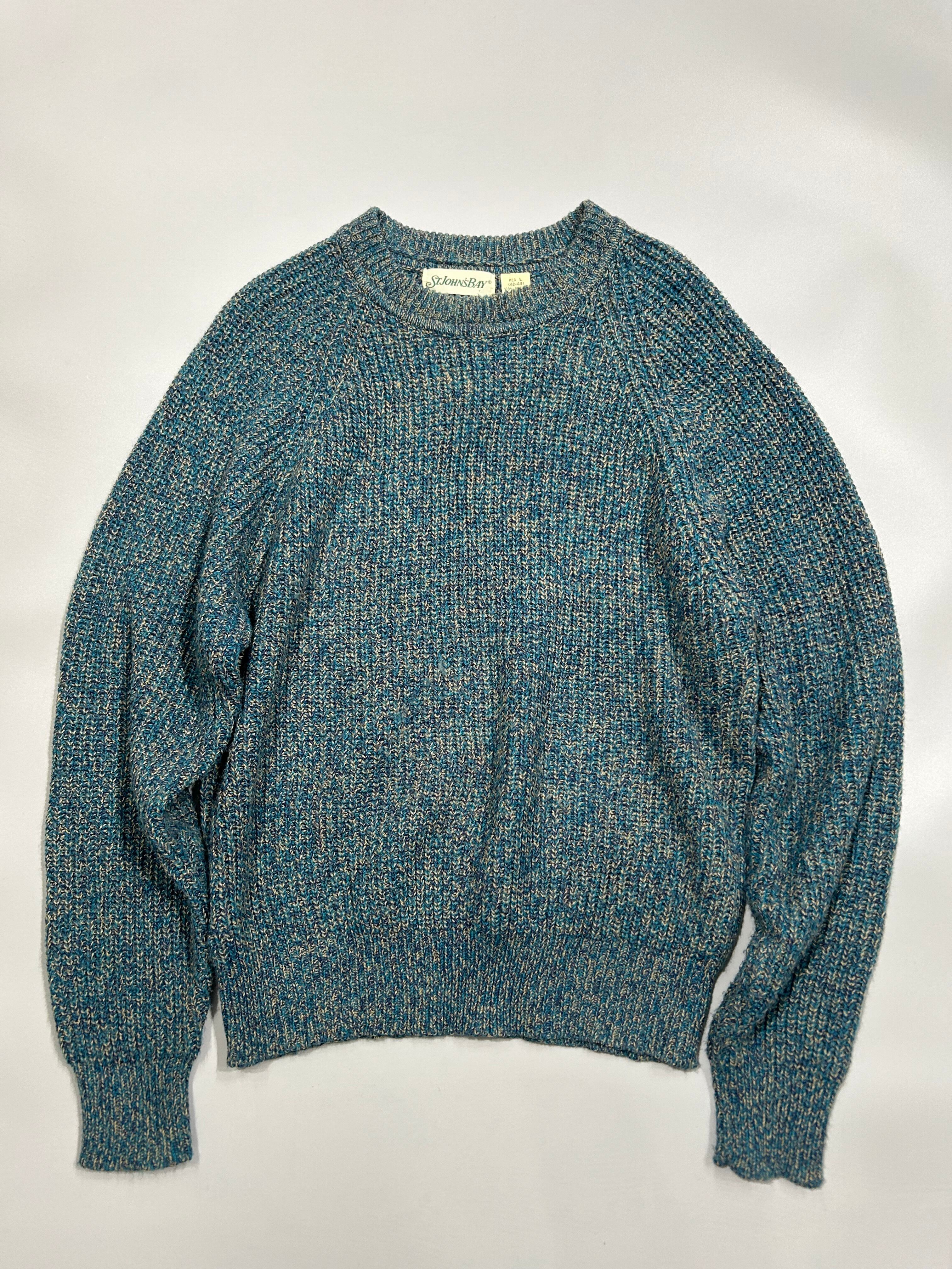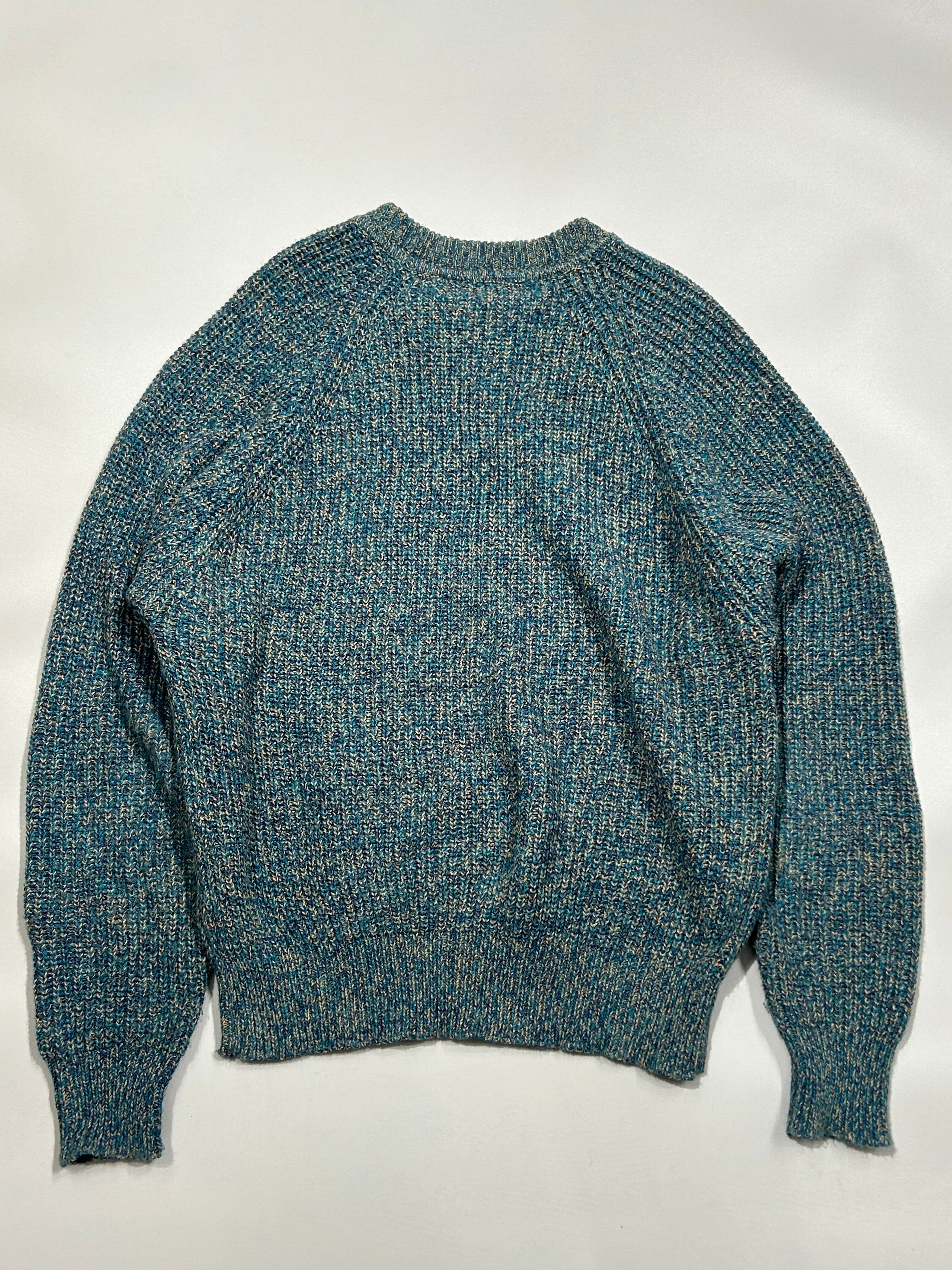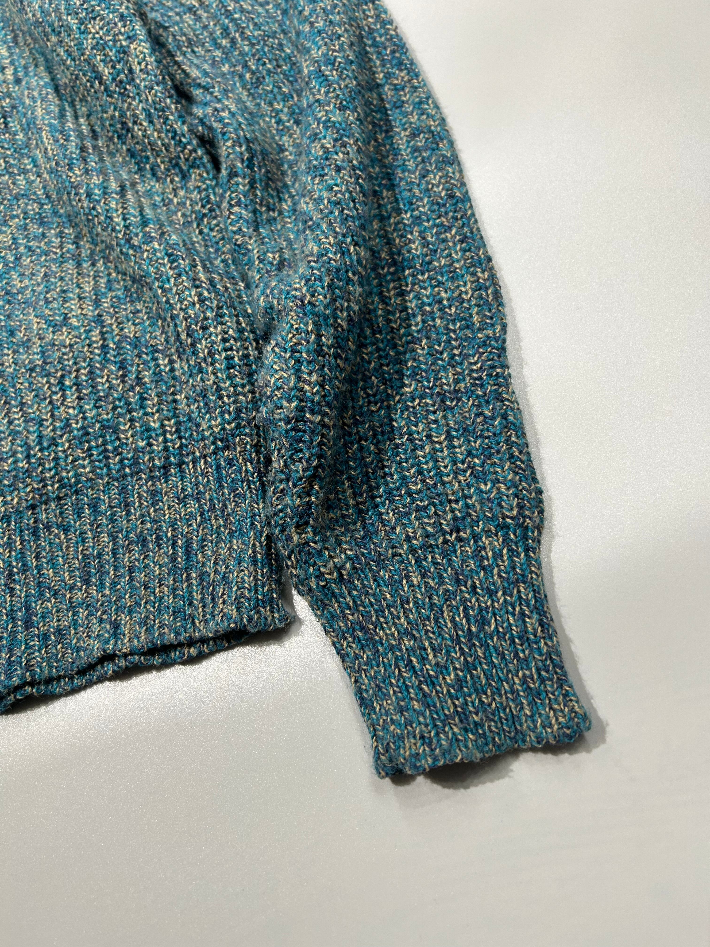 グリーンベースのマーブル生地が特徴のアクリルニット。