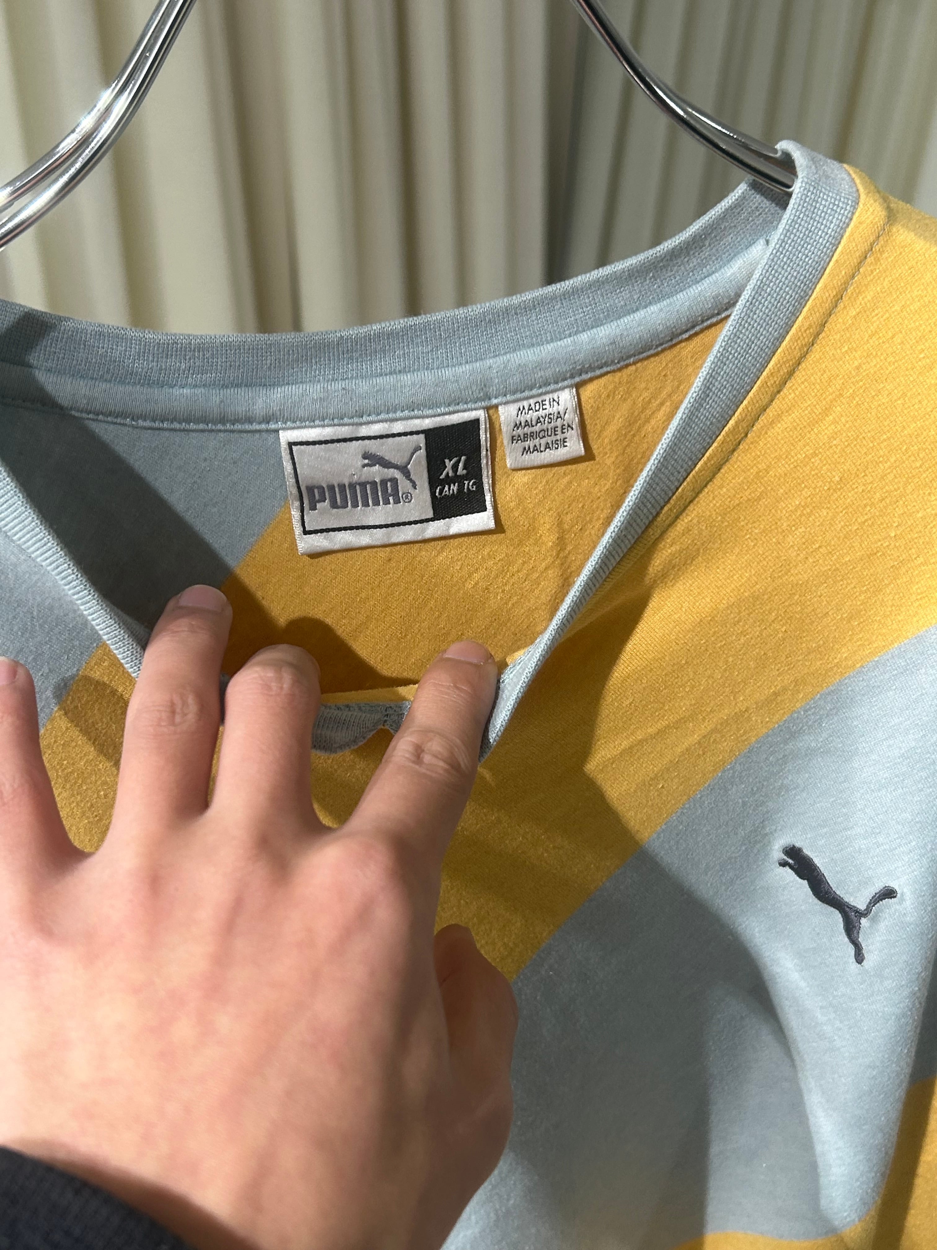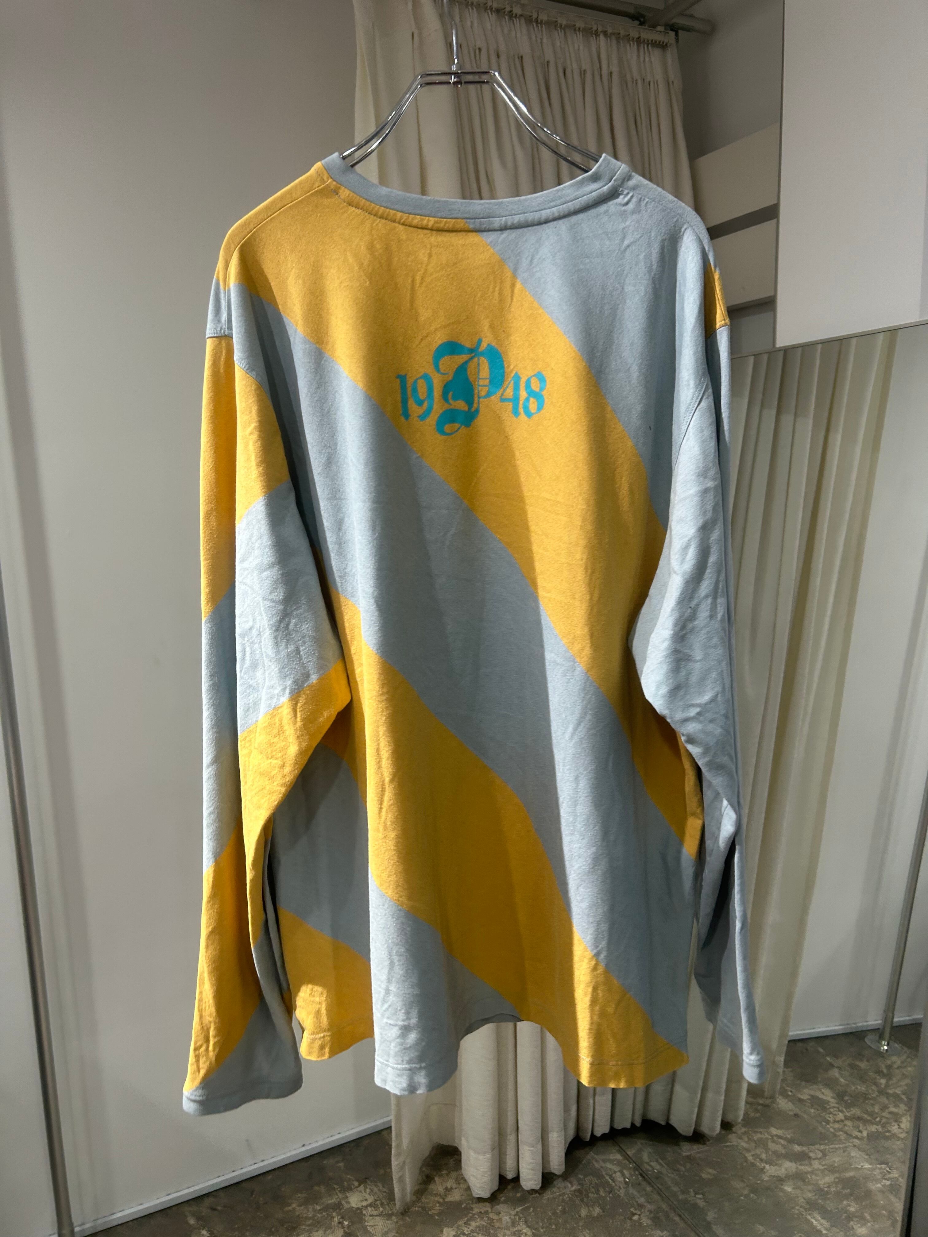 珍しい斜めボーダーデザインが特徴のカットソーです。