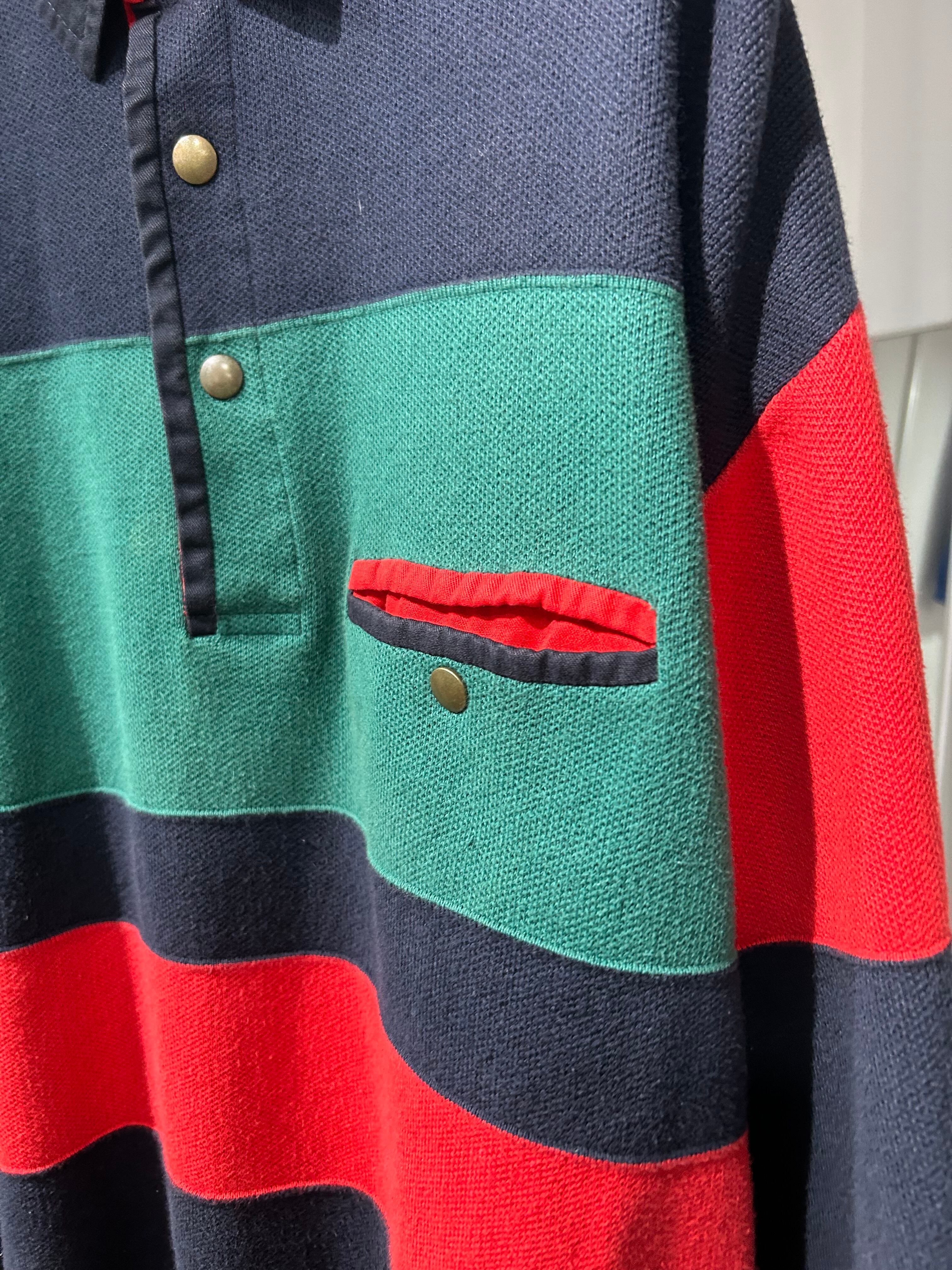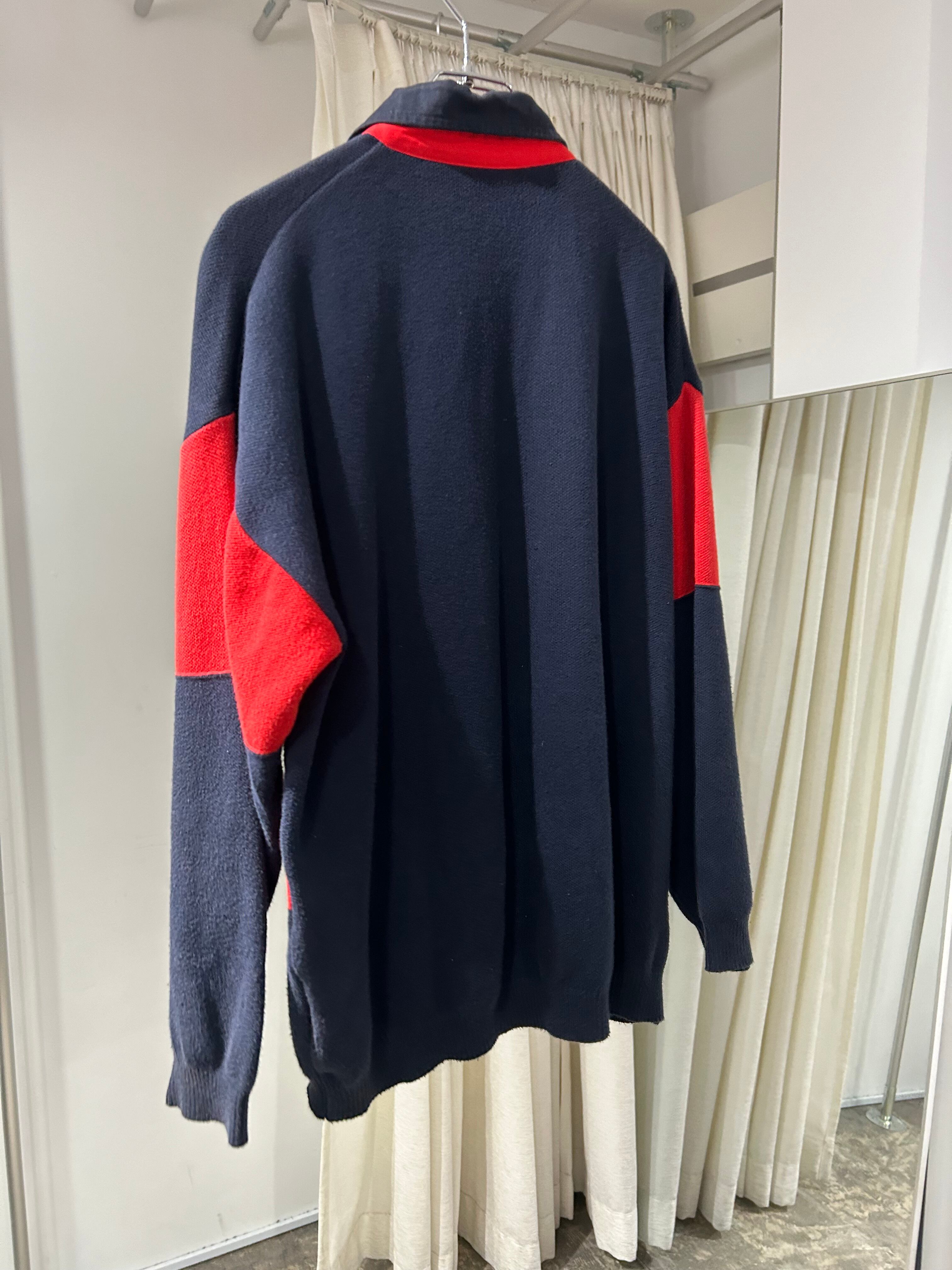 肉厚なコットンニットボディにスナップボタン、ワークジャケットのような襟、いろいろと面白い古着です。