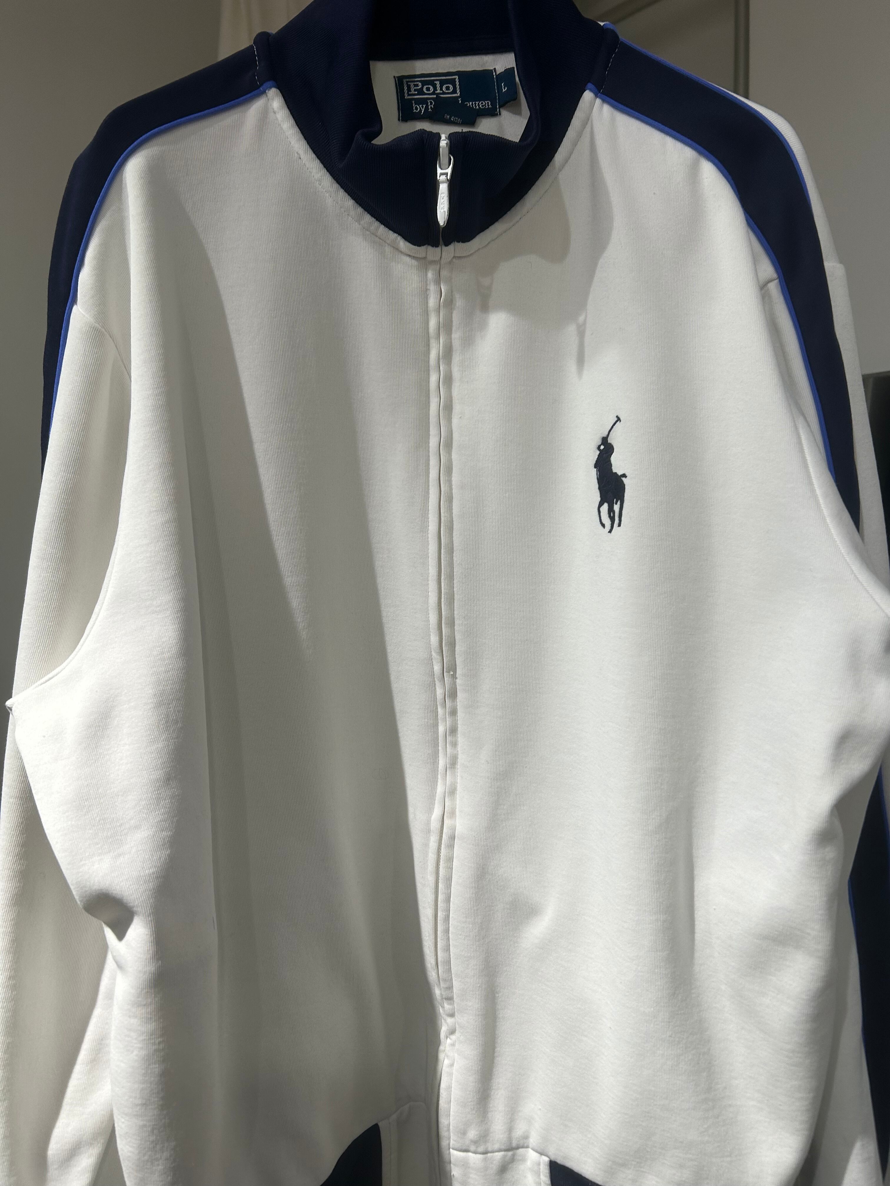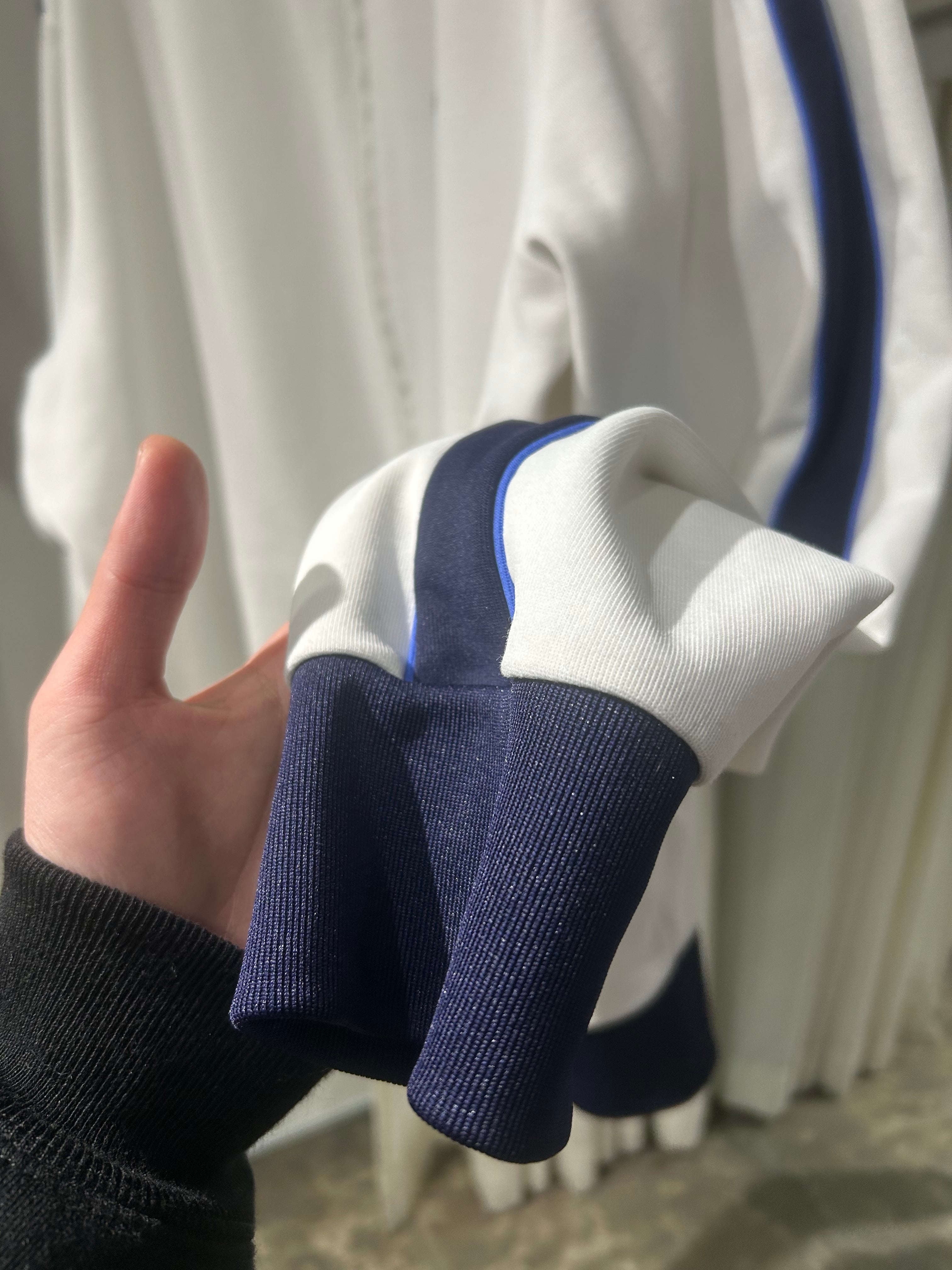 ホワイトベースにネイビーラインも品があってナイスです!サイズはゆったりなので羽織にも!