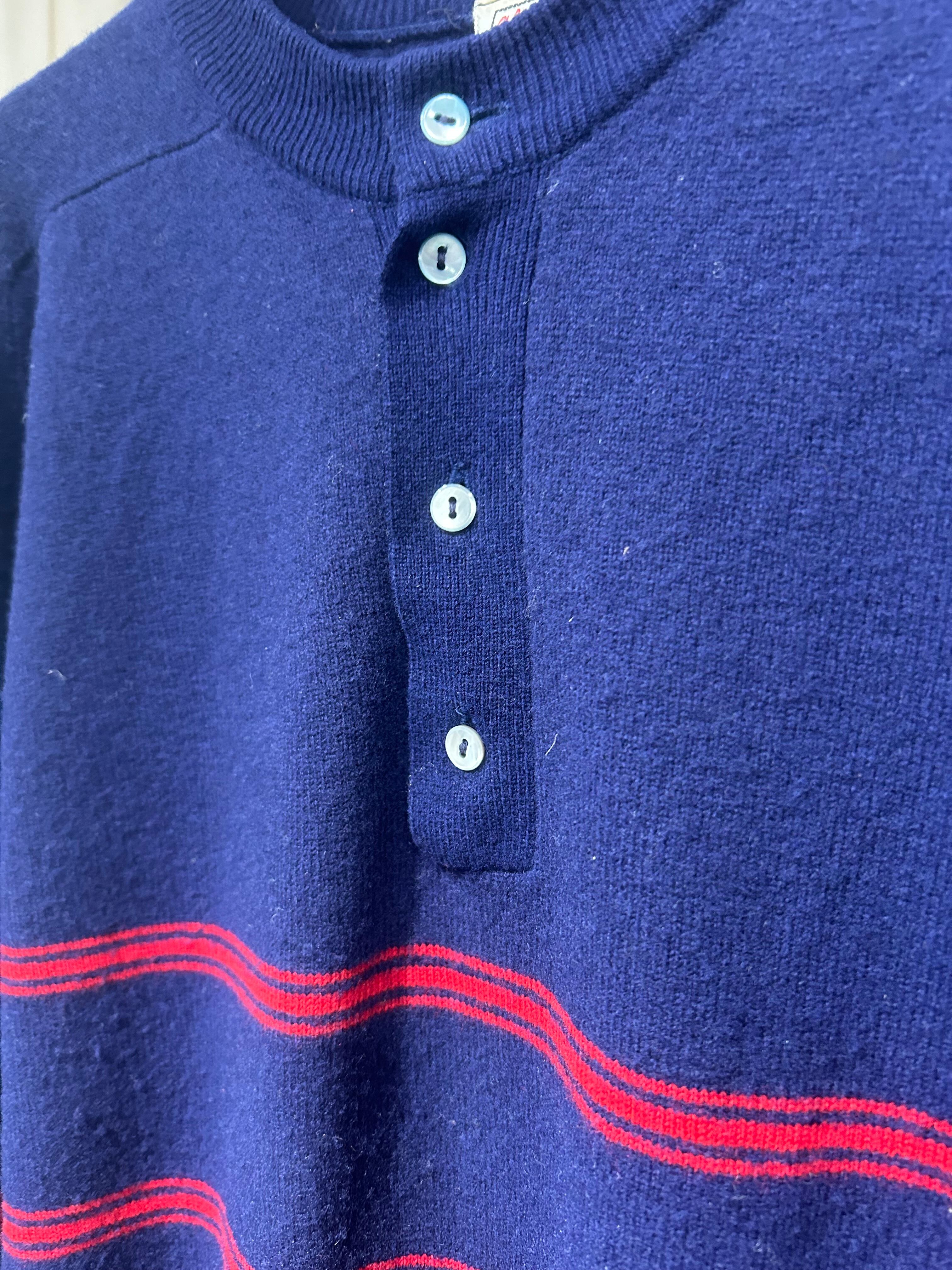 イギリス製 70s-80s ヘンリーネック ボーダーニット