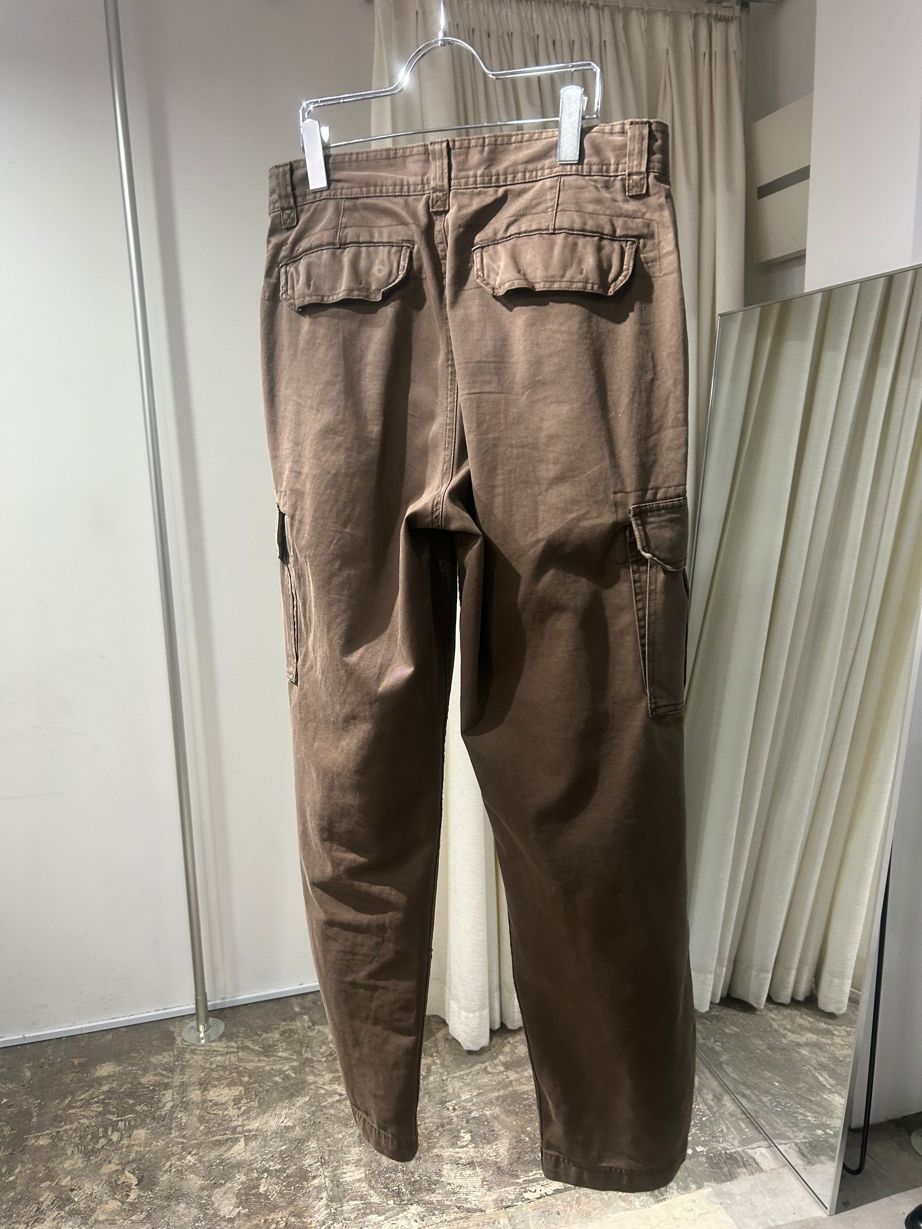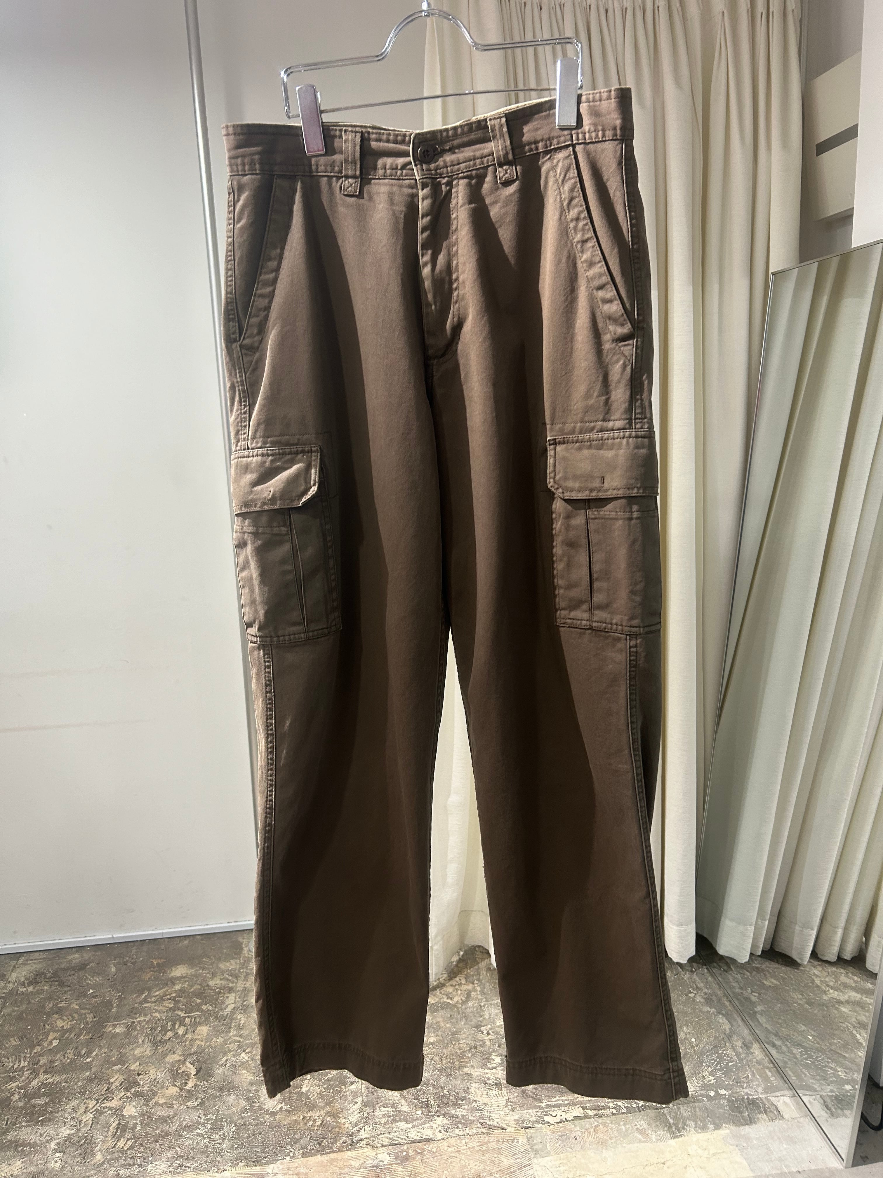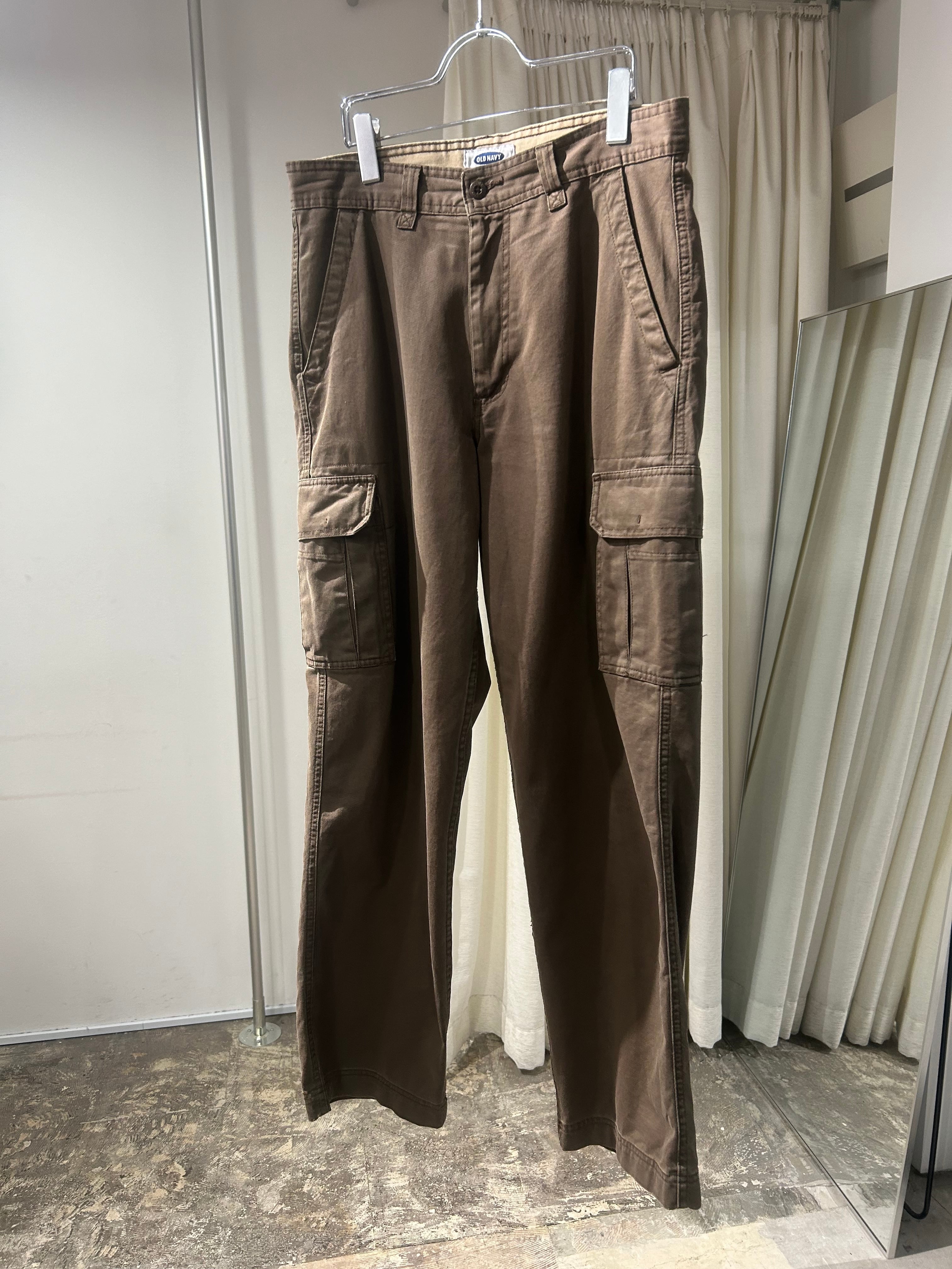 ワイドなシルエットにカーゴデザインが特徴のコットンパンツです。深いブラウンカラーがコーデで活躍しそうです。