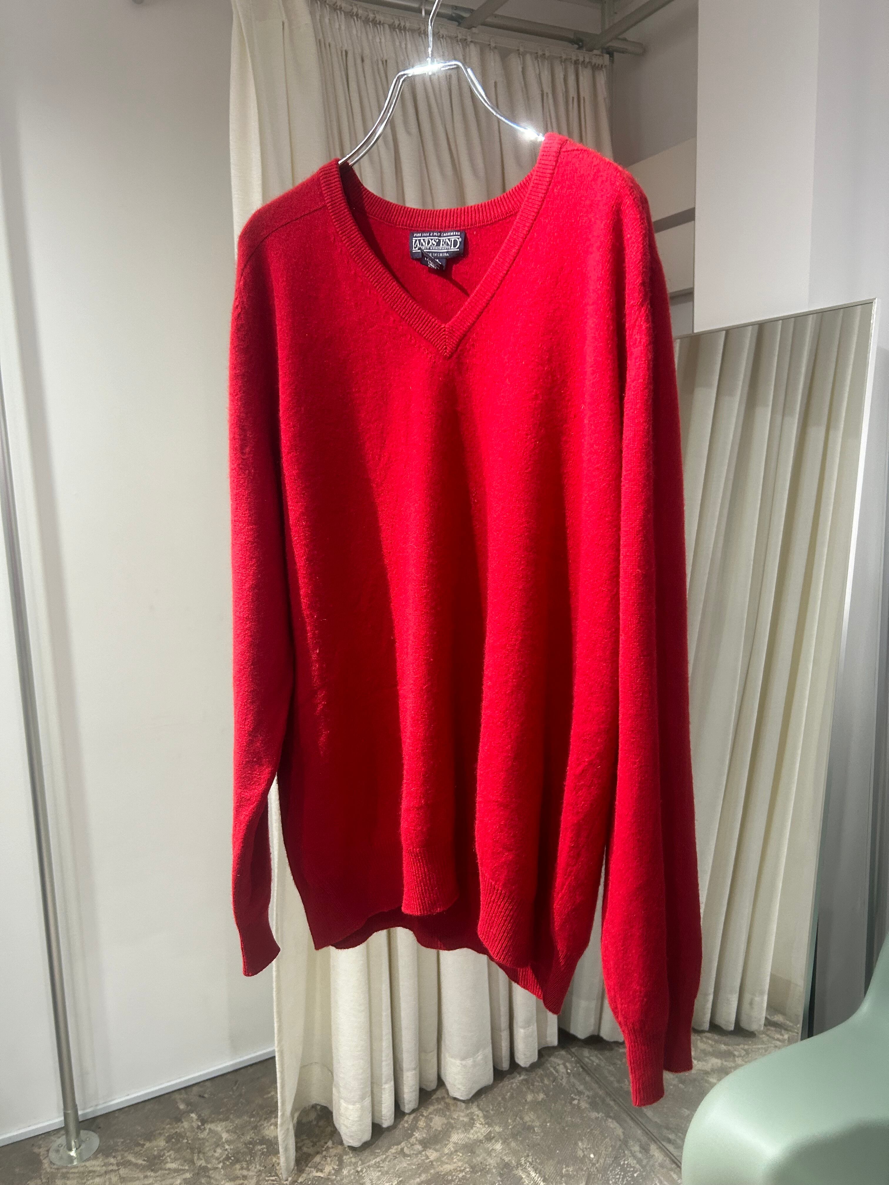 カシミヤ100%のVネックってだけでいいのに、発色良いレッドカラー!おまけにランズエンドのタグついてます。