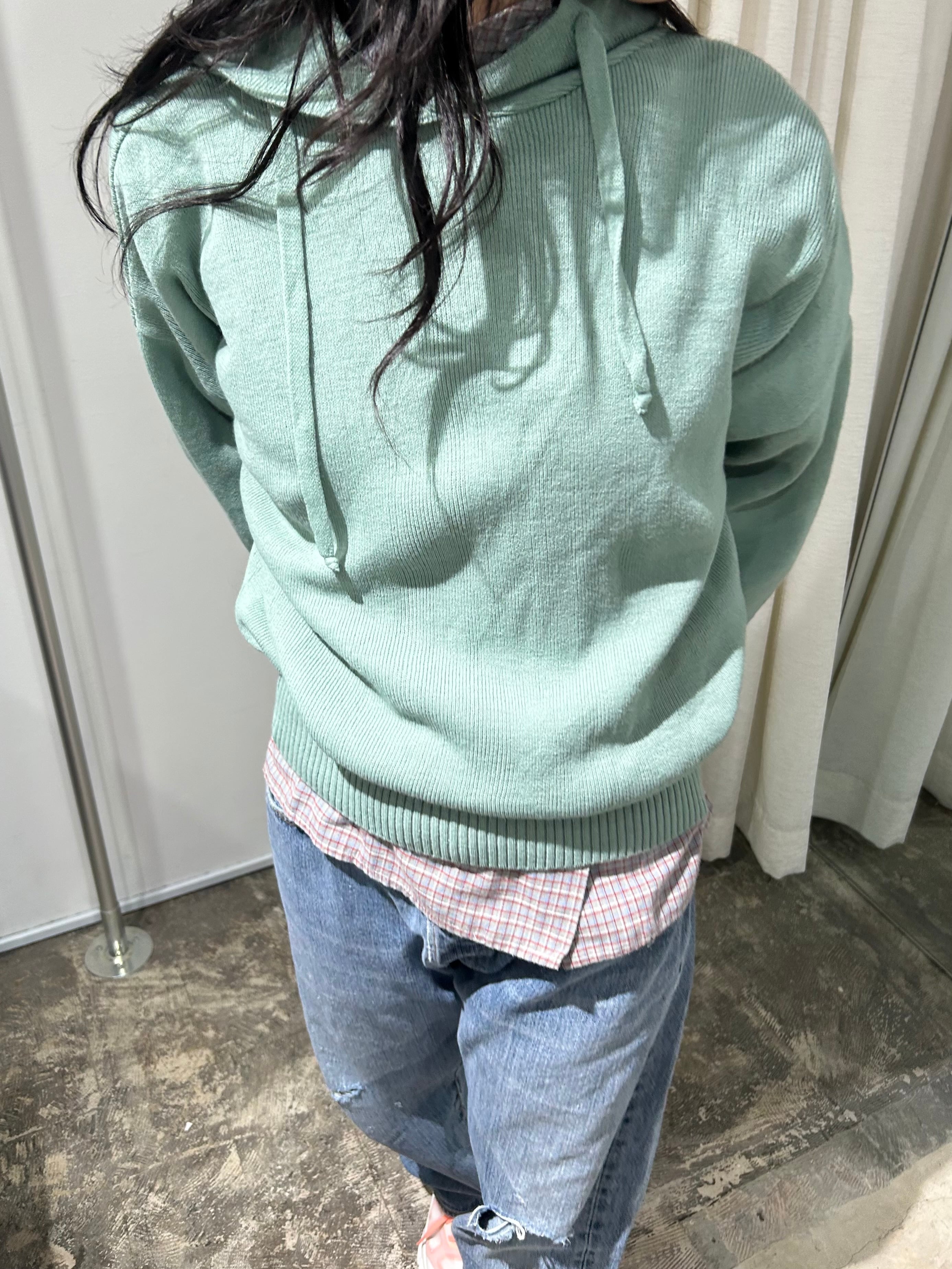 綺麗なライムカラーで、ニット素材のパーカー。