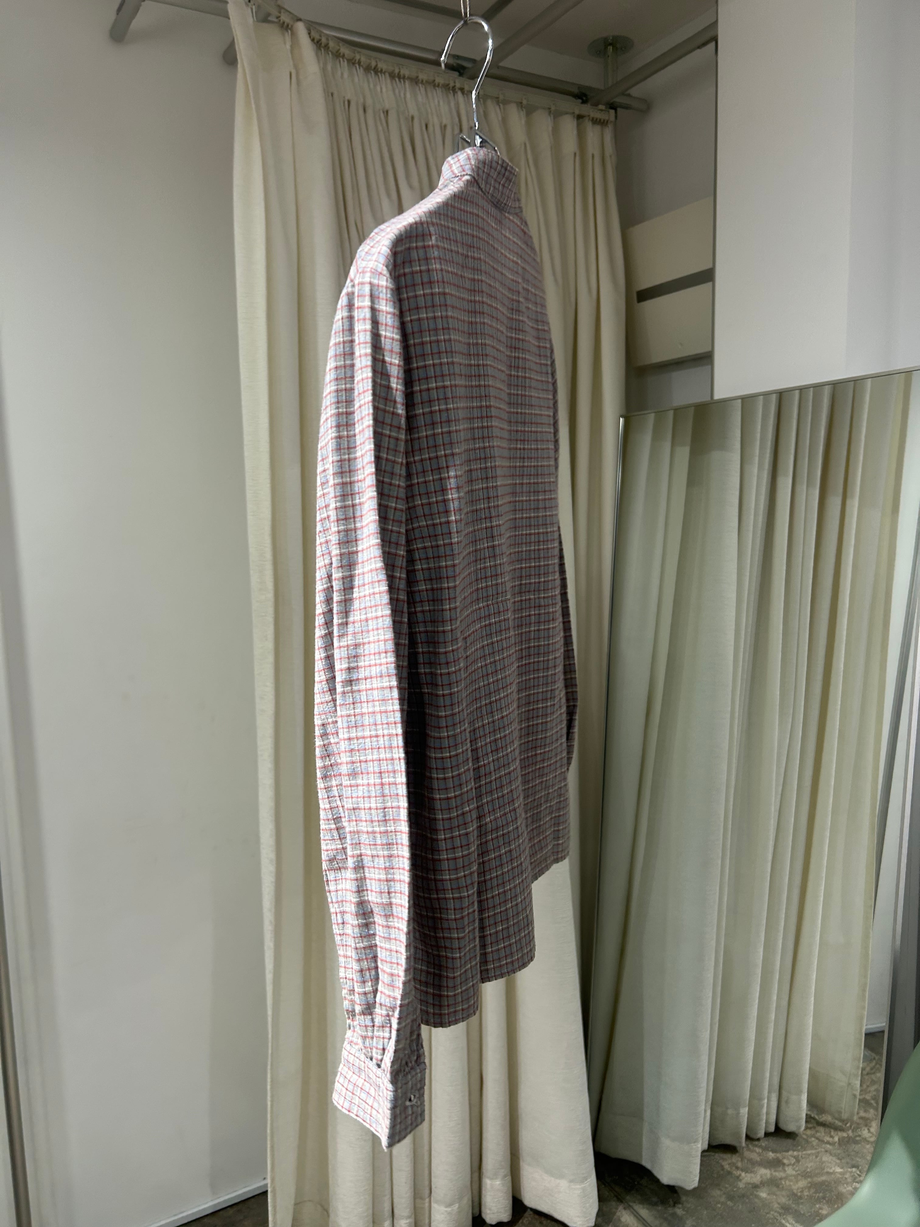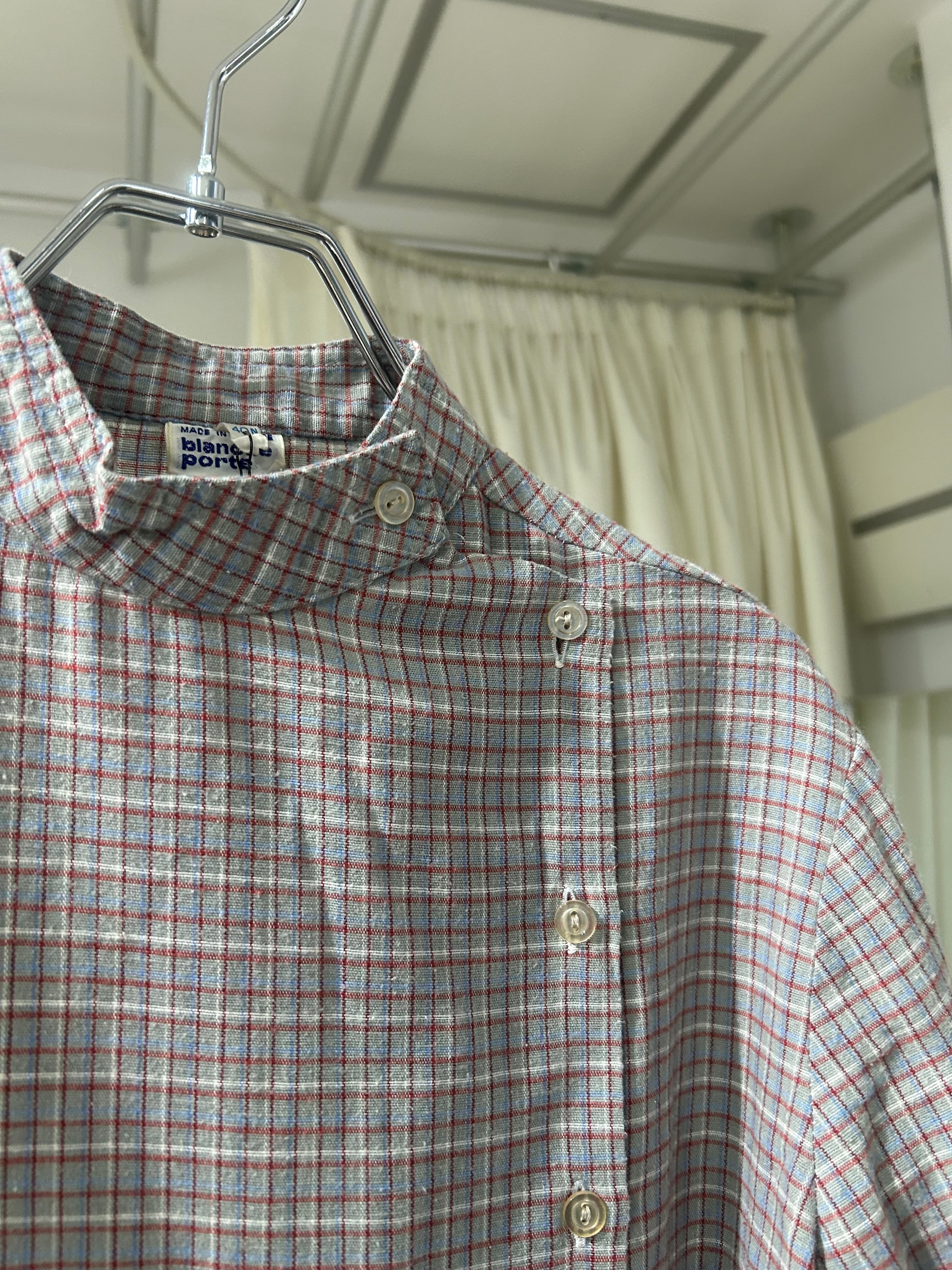 ボタンのつき方が独特で、どこか知的な印象を与えます。