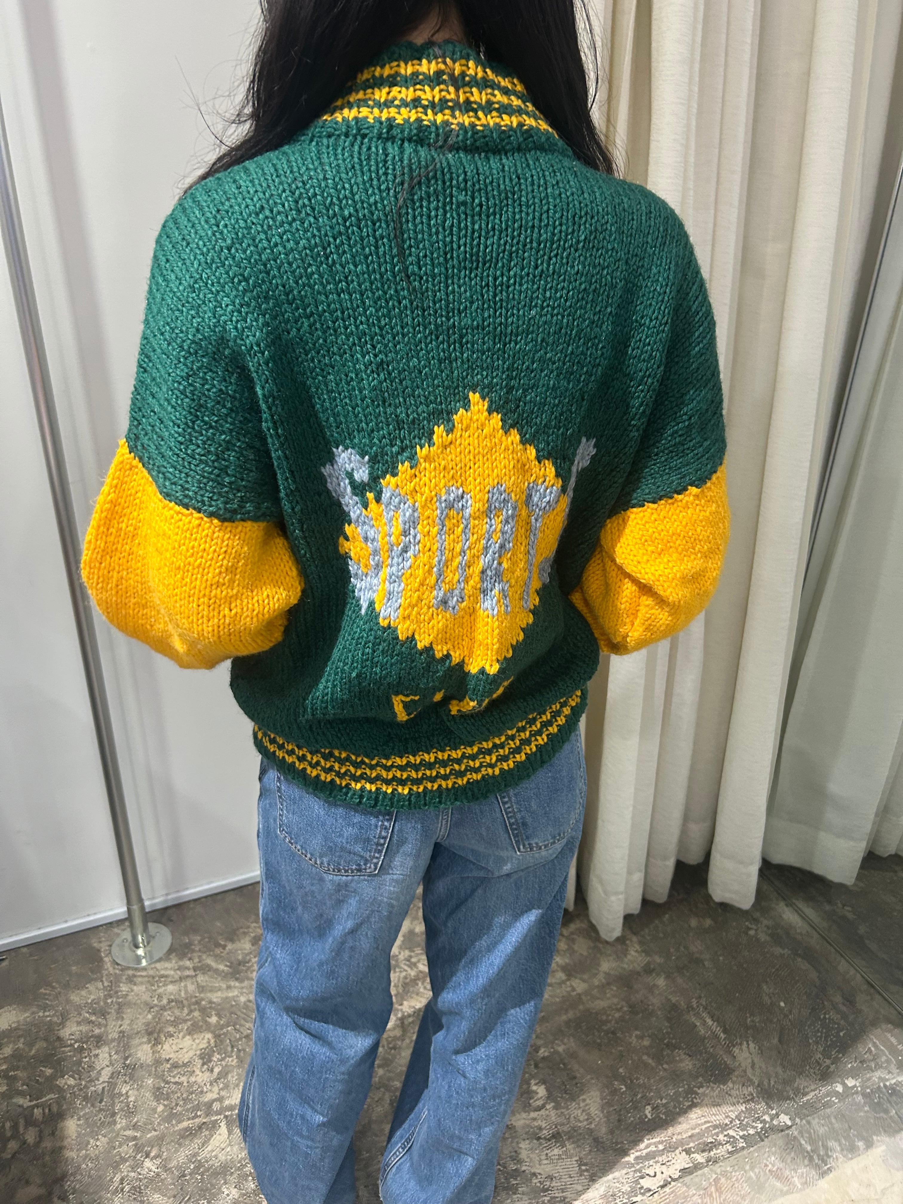 スタジャンをニットで作っちゃいました!な1着。ブランドタグもなにもついてないので、手作りの可能性も(?)