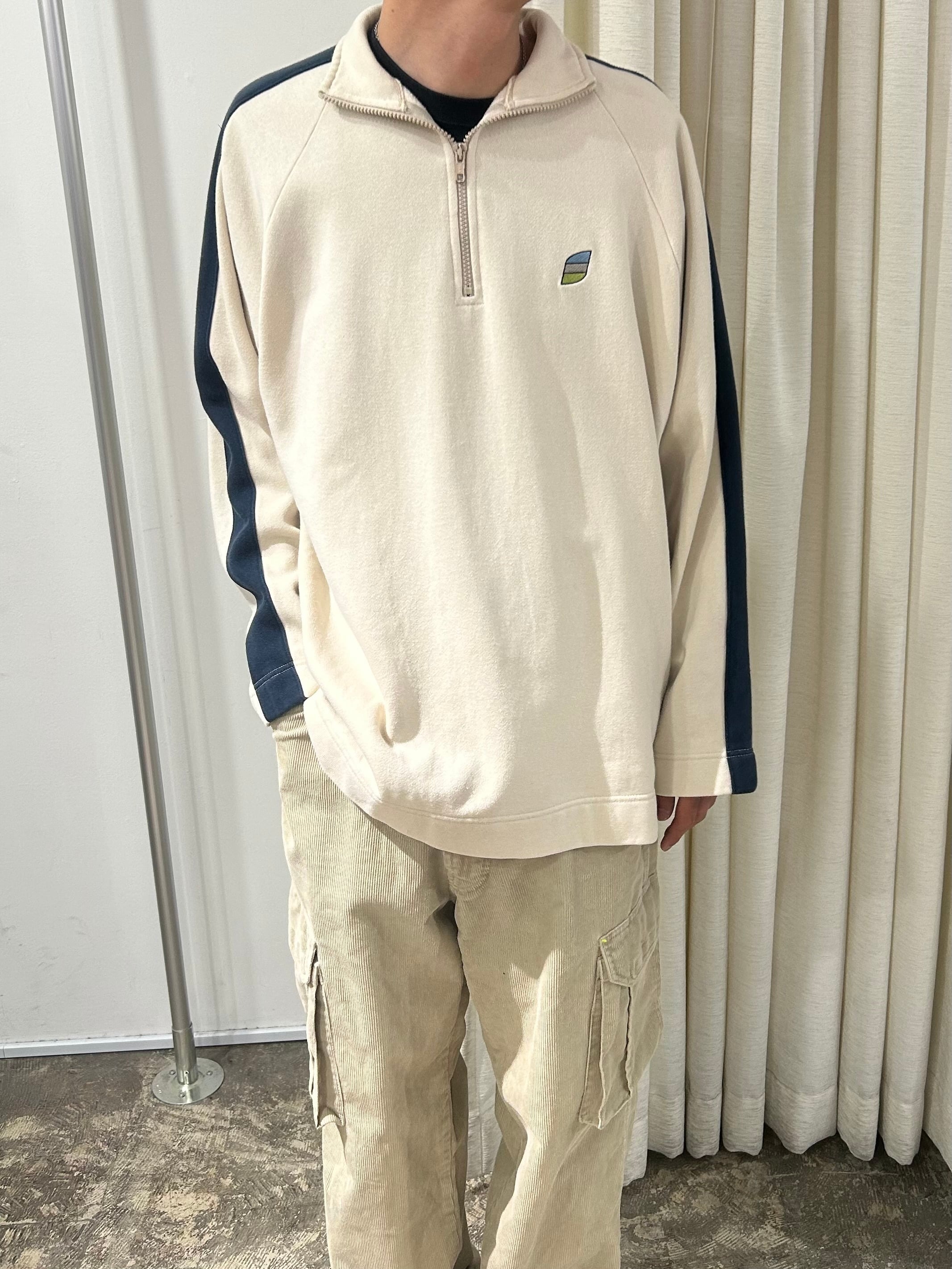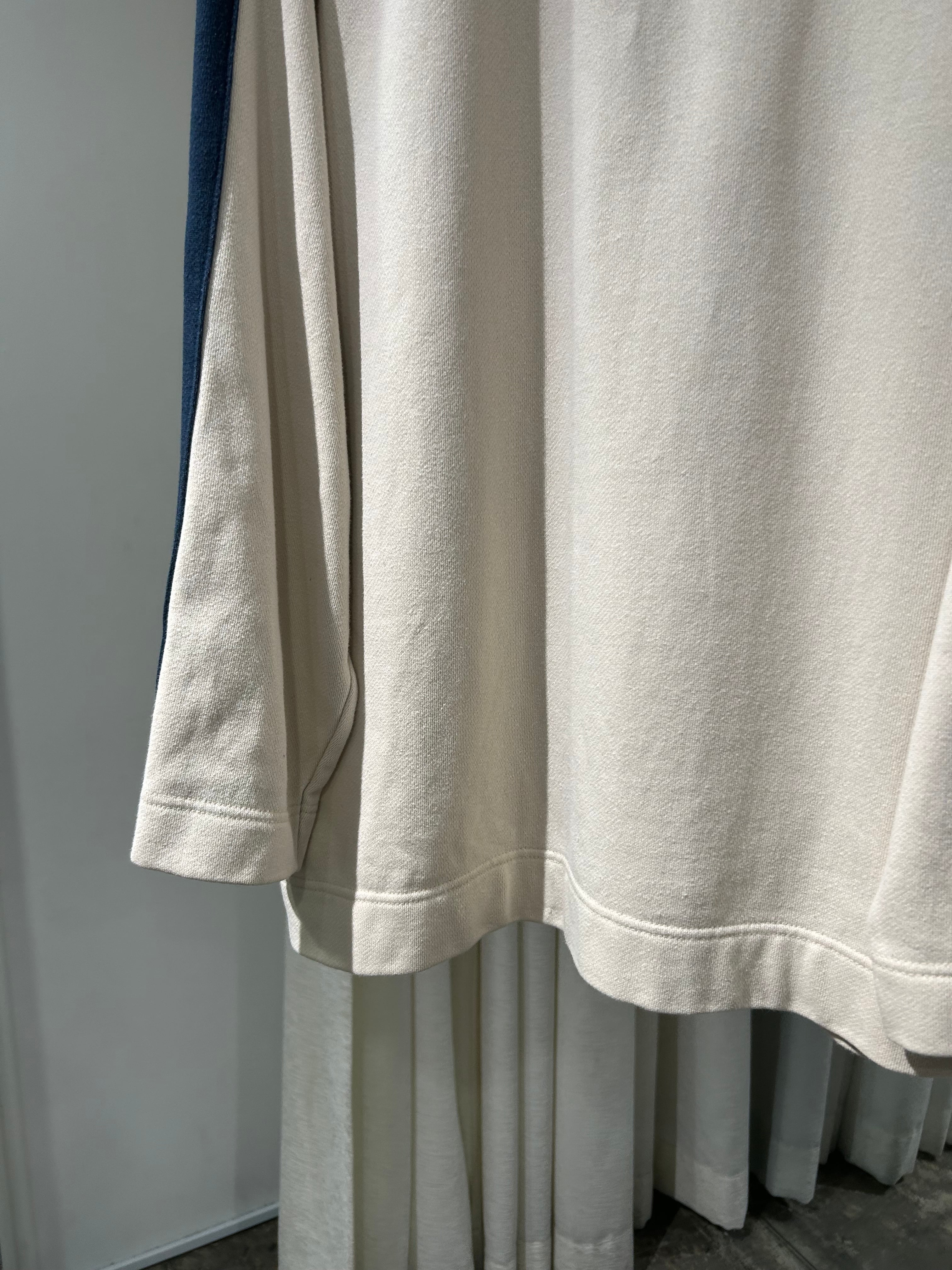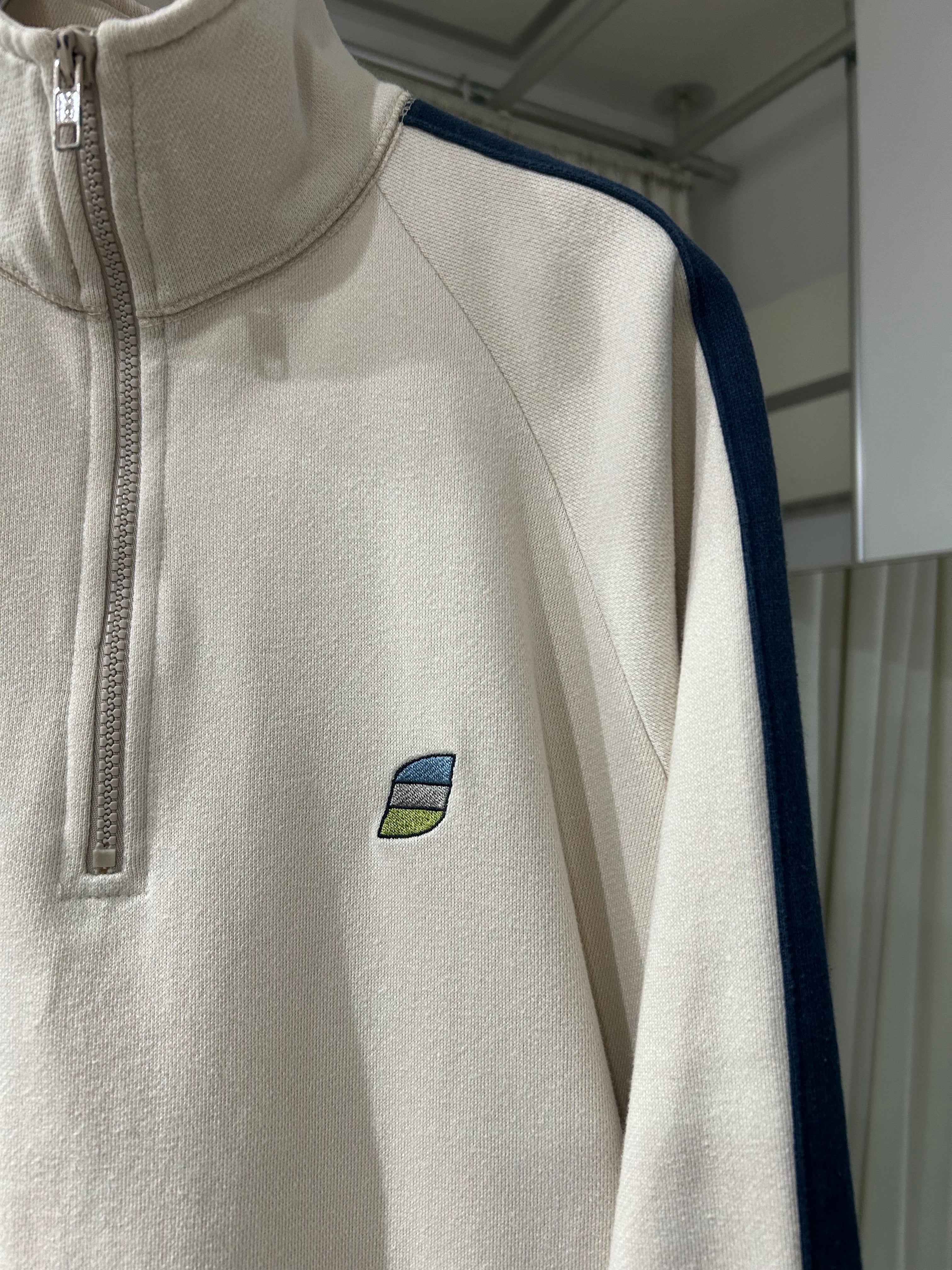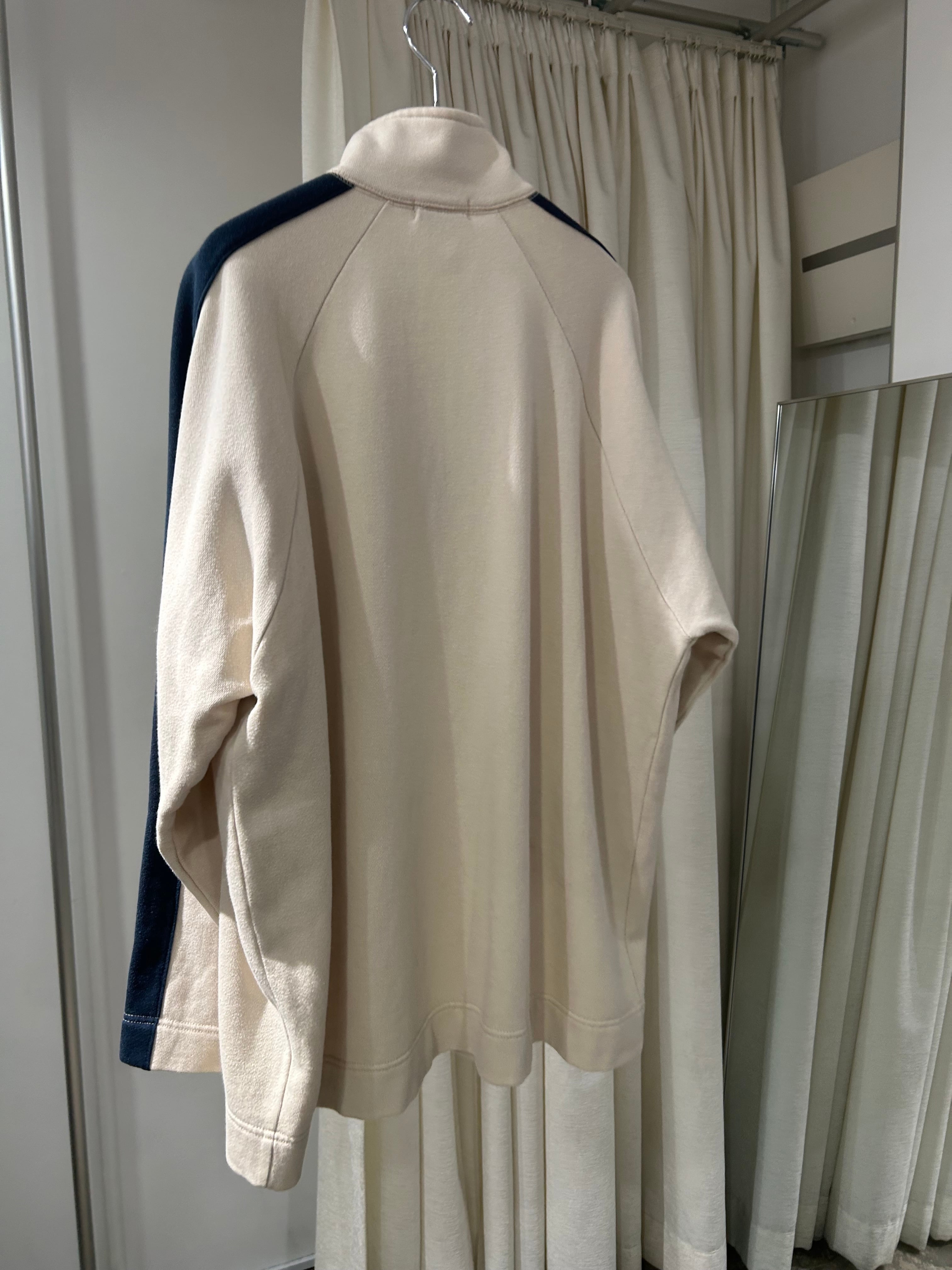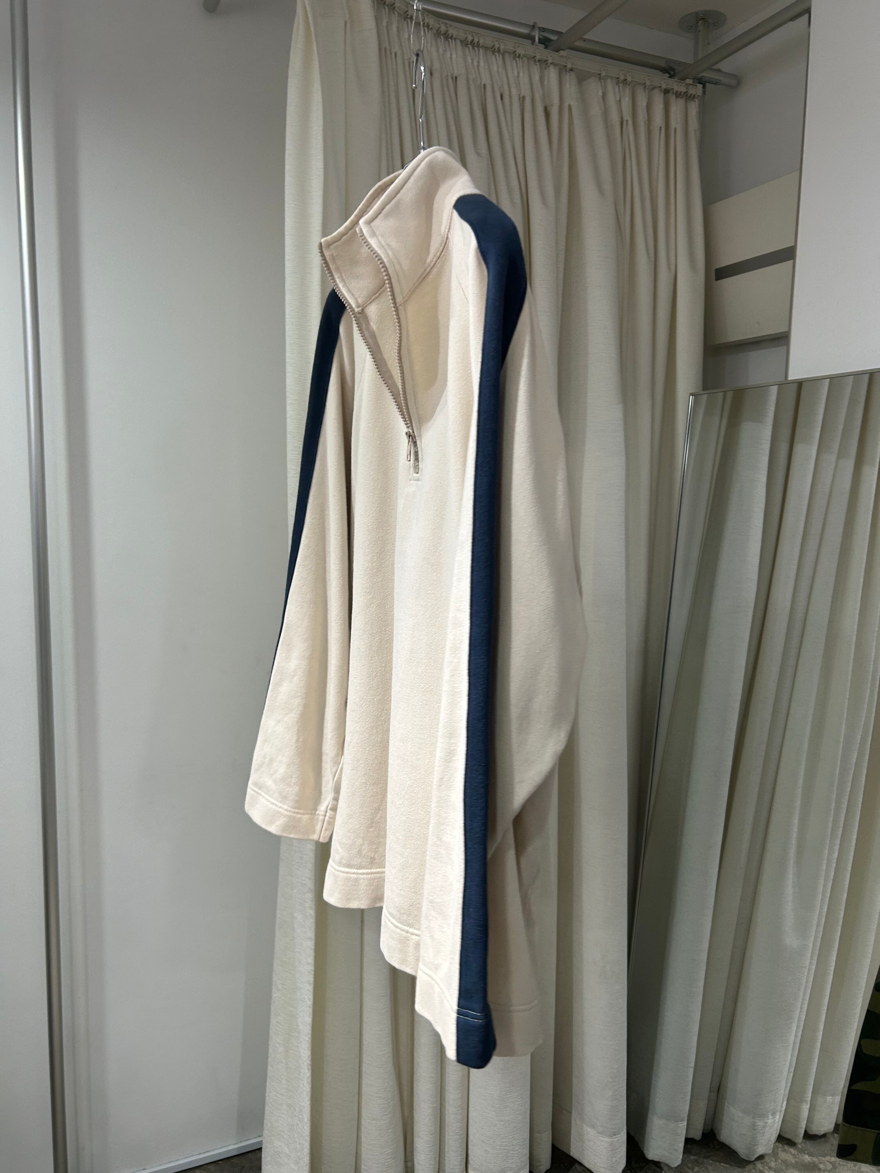 アイボリーボディにネイビーの袖ラインのスポーティなデザイン。